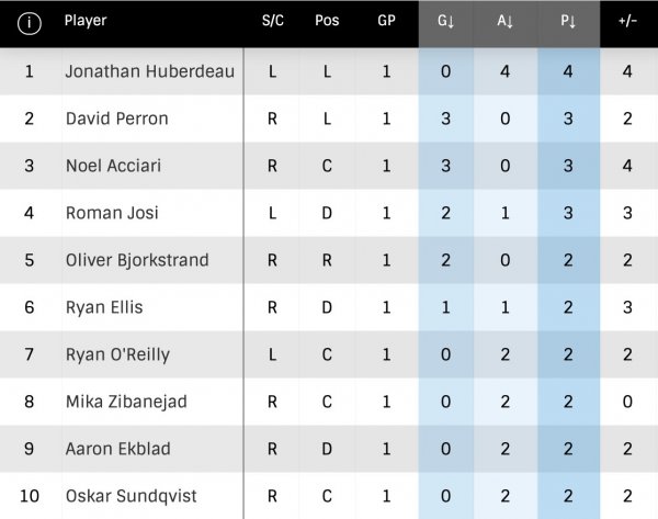 – David Perron s'est permis un tour du chapeau afin de porter son total de filets à 15.